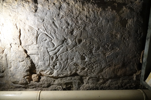 In the south wall of the tower is the Wolf Stone, probably reused from a ceremonial seat.
