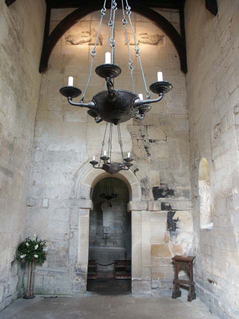 Description; The blind arch decoration is right round the building. Inside the typical tall, narrow proportions of a saxon church are apparent. Similarly with the doors and chancel arch. The chancel itself had been turned into a cottage and holes in the side walls for upper floor beams can still be seen. Upon restoration a collection of saxon sculptures were collected and made into an alter, surmounted by a cross fragment