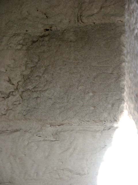 Further evidence of reused roman material is on this window-jamb, it has the sideways-on inscription;
