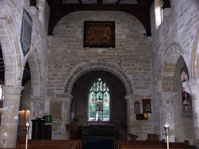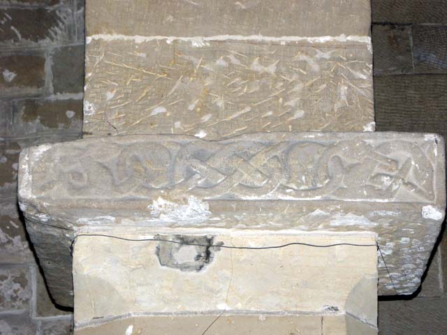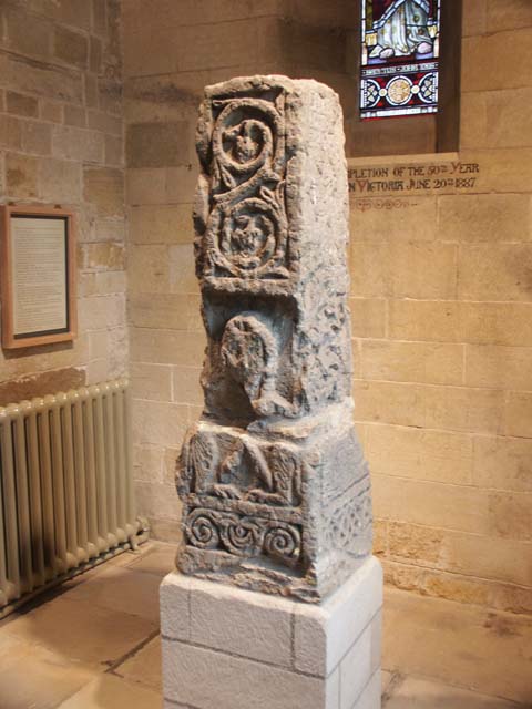 In the south aisle is the remains of a cross shaft. It is of the 7th Century, discovered being used as a gatepost in the 19th Century. It is decorated with interlace designs, and figures. There are various latin and runic scripts. The latin script mentions Abbess Oedilburga, who was the great niece of St, Hild, who founded the monastery here in 680AD.