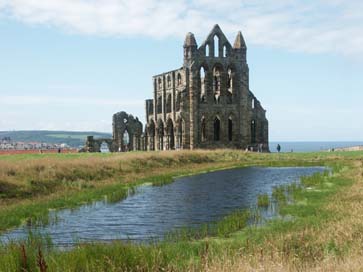 Hild was the Great-niece of King Edwin, the most powerful pagan Northumbrian king, who ruled from the Humber to the Firth of Forth. When she was 13, Hild was baptised by Paulinus. Later, in the reign of King Oswald, she became Abbess of Hartlepool. 8 years later she founded the abbey at Whitby. Called by the Saxons “Streanaeshalch”, Whitby was a foundation of monks and nuns. This type of mixed monastery was always headed by an Abbess. Situated to the north of the present mediaeval ruin, to the right in the picture, it was abandoned after Viking raids in 867AD.